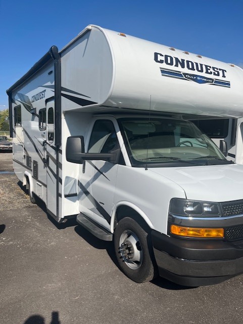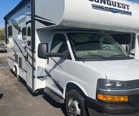 Experience freedom and comfort with the 2022 Gulf Stream Conquest 6237 – your home away from home! 2022 Gulf Stream Conquest 6237 – Serviced Here Since New – Luxury Package – 7500lbs Hitch – Safety Net – Rear Window – Heated & Remote Mirrors with Sideview – Rear Ladder – Spare Tire – LED TV – Oven. Retired from our private fleet