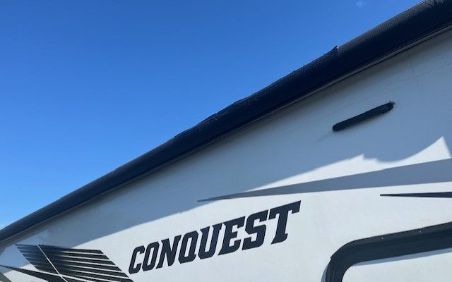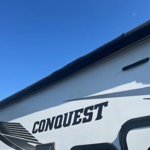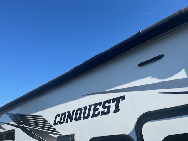 The Gulf Stream Conquest features a powerful Ford E350 chassis with a V8 7.3L engine providing 350HP, perfect for tackling varied terrains. With a towing capacity of 7,500 lbs and a rear ladder for easy roof access, this RV is built for adventurous souls. The 7500 lbs hitch ensures you can bring along your gear without worry.