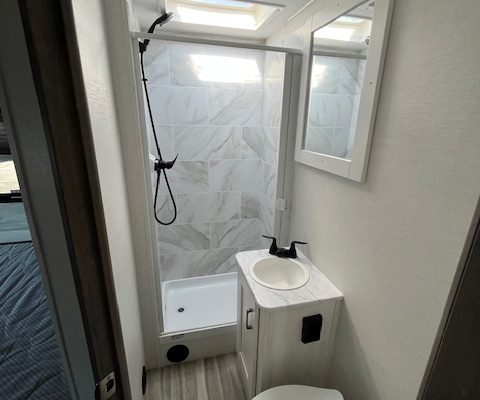 Stay comfortable in any weather with a robust air conditioning unit and a furnace for chilly nights. With safety essentials like a CO detector, smoke detector, and fire extinguisher, you can travel with peace of mind. The RV also includes a water heater and generous water capacity, boasting 44 gallons of fresh water, ensuring you have what you need on long trips.